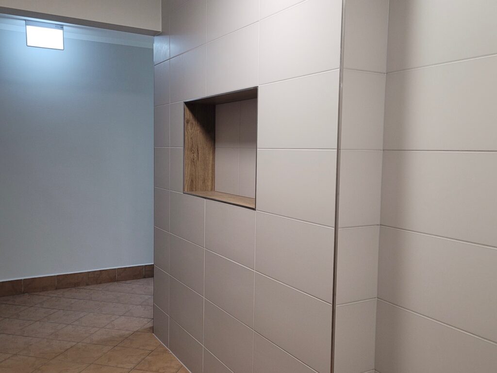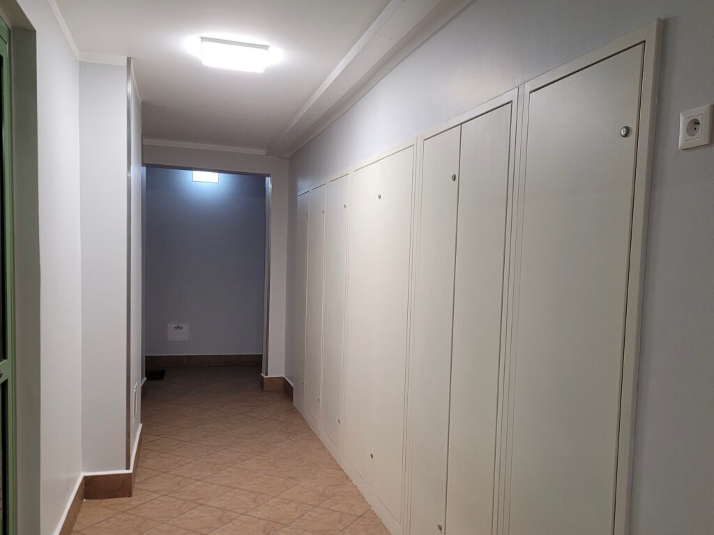 W budynku przy ul. Irysowej 27 w Warszawie wykonano prace remontowo-budowlane obejmujące wymianę drzwiczek schowków lokatorskich na wszystkich kondygnacjach oraz renowację części wspólnych. Zakres robót obejmował demontaż starych elementów i montaż nowych drzwiczek wraz z estetycznym wykończeniem wnęk, naprawy tynków, wykonanie gładzi oraz gruntowanie i malowanie powierzchni. Na parterze oraz w rejonie wind przeprowadzono kompleksową renowację ścian i sufitów, obejmującą usunięcie uszkodzonych powłok, wyrównanie powierzchni, malowanie sufitów i ścian oraz montaż elementów ochronnych i wykończeniowych. Całość prac zakończono wywozem odpadów budowlanych oraz uporządkowaniem terenu.